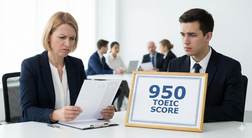 C’est un scénario classique en entretien d’embauche. Un candidat présente un CV impeccable, affichant fièrement un score TOEIC recrutement de 950 points (couleur Or). Sur le papier, c’est un profil bilingue, parfaitement apte à gérer des dossiers internationaux.